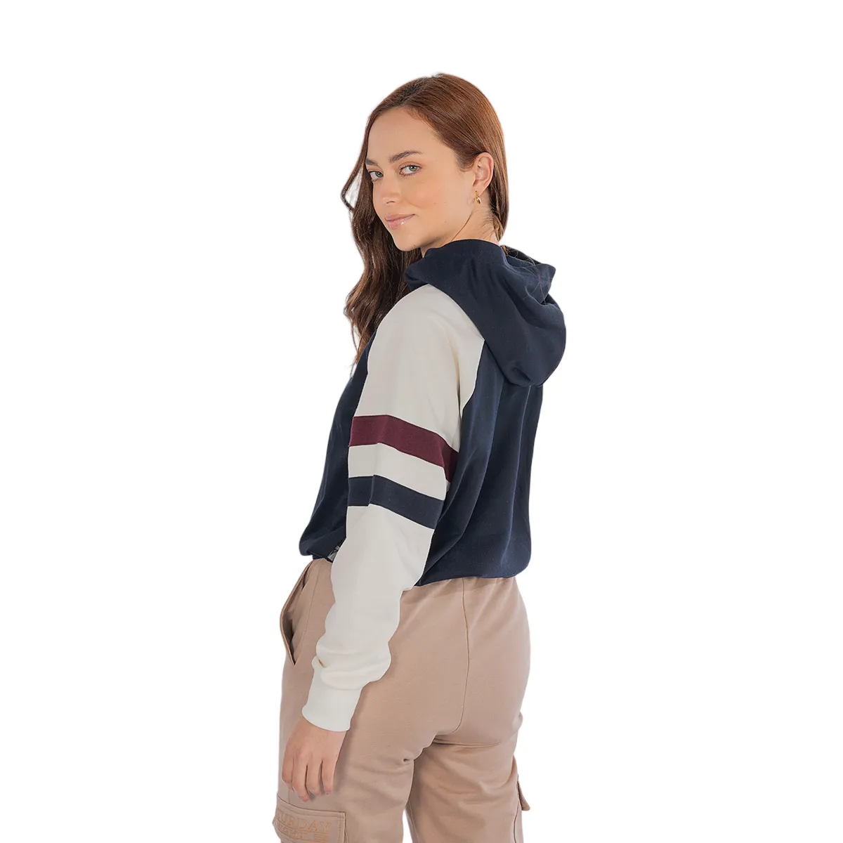 Esta chaqueta con capucha combina bloques de color negro y crema con franjas decorativas en las mangas, logrando un estilo deportivo y retro. Su diseño funcional y el detalle gráfico en el pecho la convierten en una pieza cómoda y distintiva, ideal para un look juvenil y dinámico. LOS PRODUCTOS PROMOCIONADOS NO TIENEN CAMBIO.