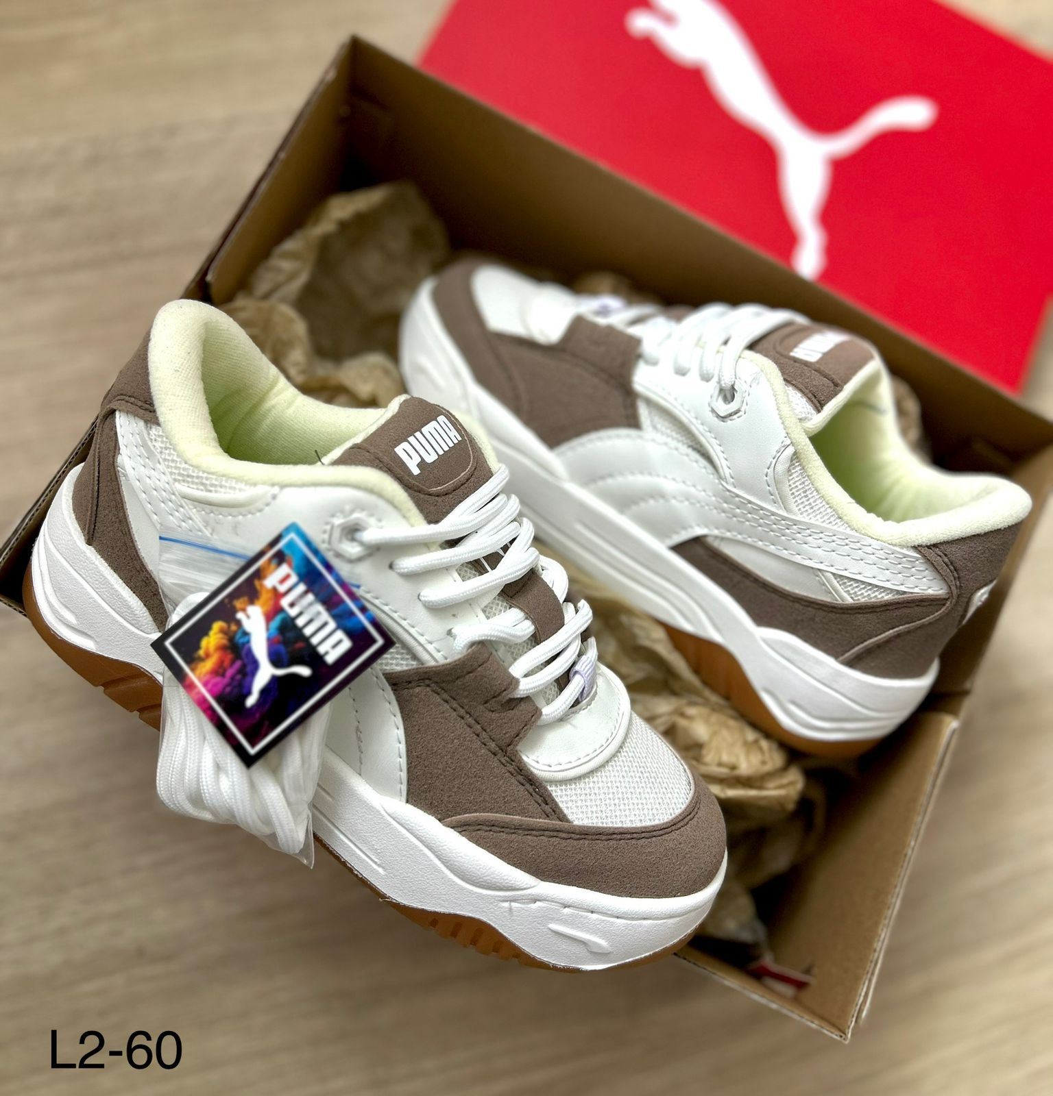 Zapatilla Puma Unisex Blanco y Cafe